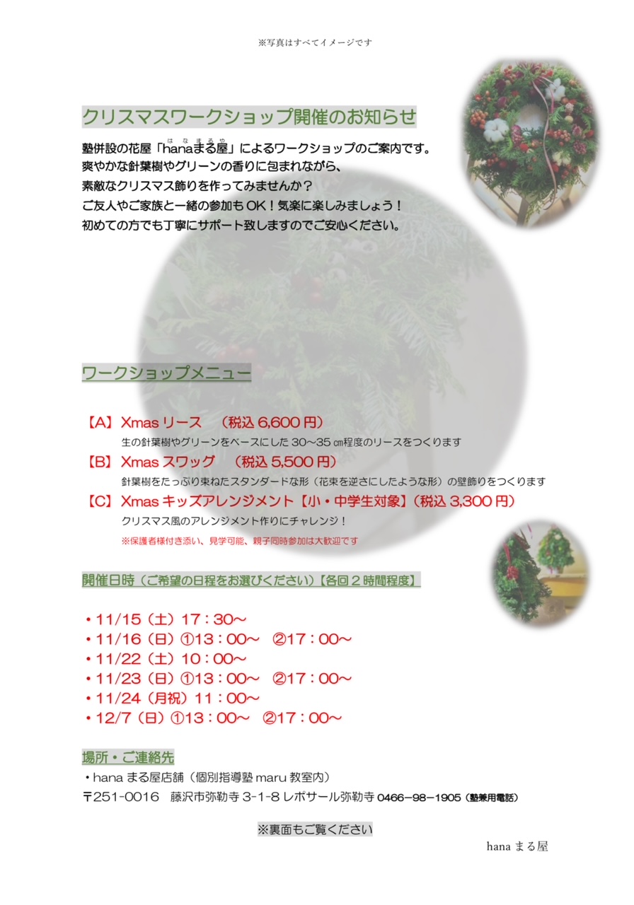 hanaまる屋 2025クリスマスリースご予約&ワークショップについて